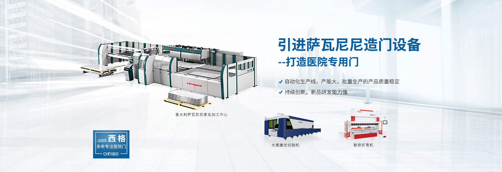 西格,國內(nèi)大型醫(yī)院門生產(chǎn)基地,斥巨資建立 HPL和鋼質(zhì)兩大材質(zhì)的標準化醫(yī)院門生產(chǎn)線,